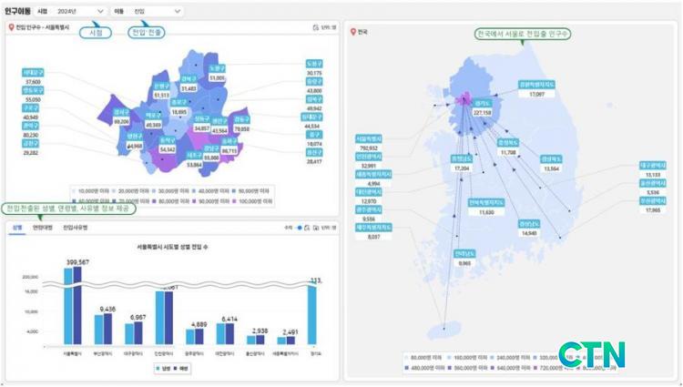 [¼¿ï/CTN]°¡±ÝÇö ±âÀÚ= ¼¿ï½Ã°¡ 2001³âºÎÅÍ 2024³â±îÁö 24³â°£ÀÇ Àα¸À̵¿ µ¥ÀÌÅ͸¦ ºÐ¼®ÇÑ °á°ú, ¡®Å»¼¿ï¡¯ È帧Àº ¿©ÀüÈ÷ À̾îÁö°í ÀÖÁö¸¸ ±× ÆøÀº Å©°Ô ÁÙ¾îµç °ÍÀ¸·Î ³ªÅ¸³µ´Ù.