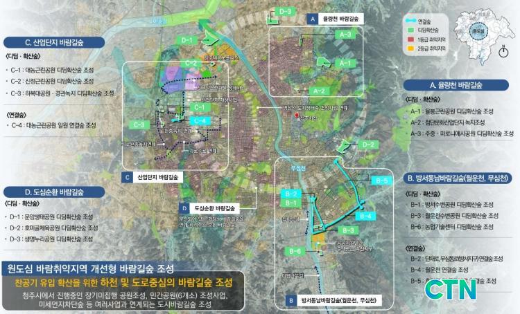ÇÑÆí µµ½Ã¹Ù¶÷±æ½£Àº µµ½Ã ¿Ü°ûÀÇ »ê¸²À» Ȱ¿ëÇÑ '¹Ù¶÷»ý¼º½£', µµ½É ³» °ø¿ø¡¤³ìÁö¿¡ Á¶¼ºµÇ´Â 'µðµõ¡¤È®»ê½£', À̸¦ ÀÕ´Â ÇÏõ¡¤°¡·Îº¯ Åë·Î ¿ªÇÒÀÇ '¿¬°á½£'À¸·Î ±¸¼ºµÈ´Ù. ½Ã´Â 2027³â±îÁö ÃÑ 15°³¼Ò¿¡ µðµõÈ®»ê½£, 5°³¼Ò¿¡ ¿¬°á½£À» Á¶¼ºÇÒ °èȹÀÌ´Ù.