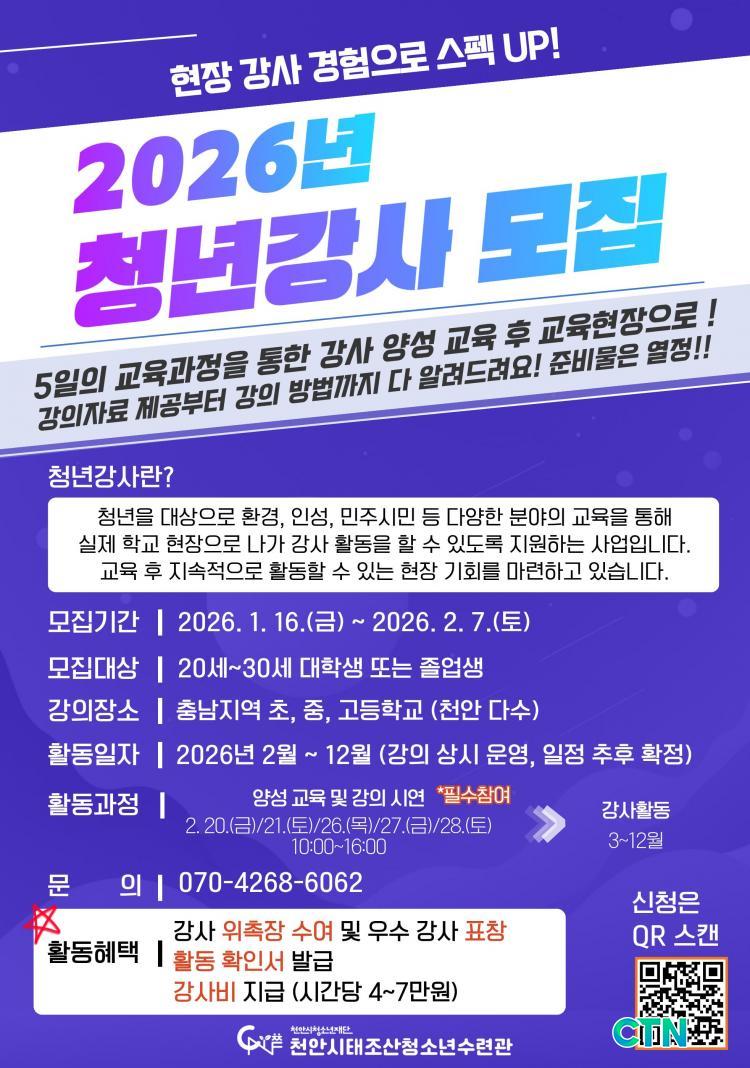 [õ¾È/CTN] °Çö¼ö ±âÀÚ = Áö¿ª û³âµéÀÌ ÀÚ½ÅÀÇ Áö½Ä°ú Àç´ÉÀ» ±³À° ÇöÀå¿¡¼ ¸¶À½²¯ ÆîÄ¡¸ç Àü¹®°¡·Î ¼ºÀåÇÒ ¼ö Àִ Ưº°ÇÑ ¹«´ë°¡ ¿¸°´Ù. (Àç)õ¾È½Ãû¼Ò³âÀç´Ü õ¾È½ÃÅÂÁ¶»êû¼Ò³â¼ö·Ã°üÀº ¿À´Â 2¿ù 7ÀϱîÁö ¡®2026³â û³â°»ç ¾ç¼º »ç¾÷¡¯¿¡ Âü¿©ÇÒ ¿Á¤ ³ÑÄ¡´Â û³âµéÀ» ¸ðÁýÇÑ´Ù°í ¹àÇû´Ù.