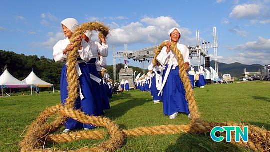 ÀÌ ³îÀÌÀÇ °¡Àå Å« Ư¡Àº ¿©¼ºµéÀÌ ÁÖÃàÀÌ µÅ ÁøÇàÇÑ´Ù´Â Á¡ÀÌ´Ù. ¸¶À» ºÎ³àÀÚµéÀÌ Â¤À¸·Î ²Á ±½Àº ÁÙÀ» ½Ã·çºÀ ÁßÅο¡ ÀÖ´Â ³ó¹Ù¿ì(¹ÙÀ§ ¸ð¾çÀÌ ³ó(Öë)À» ´à¾Ò´Ù ÇØ ºÙ¿©Áø À̸§)¿¡ °É¾î Àâ¾Æ´ç±â¸ç ºñ¸¦ ±â¿øÇÑ´Ù.