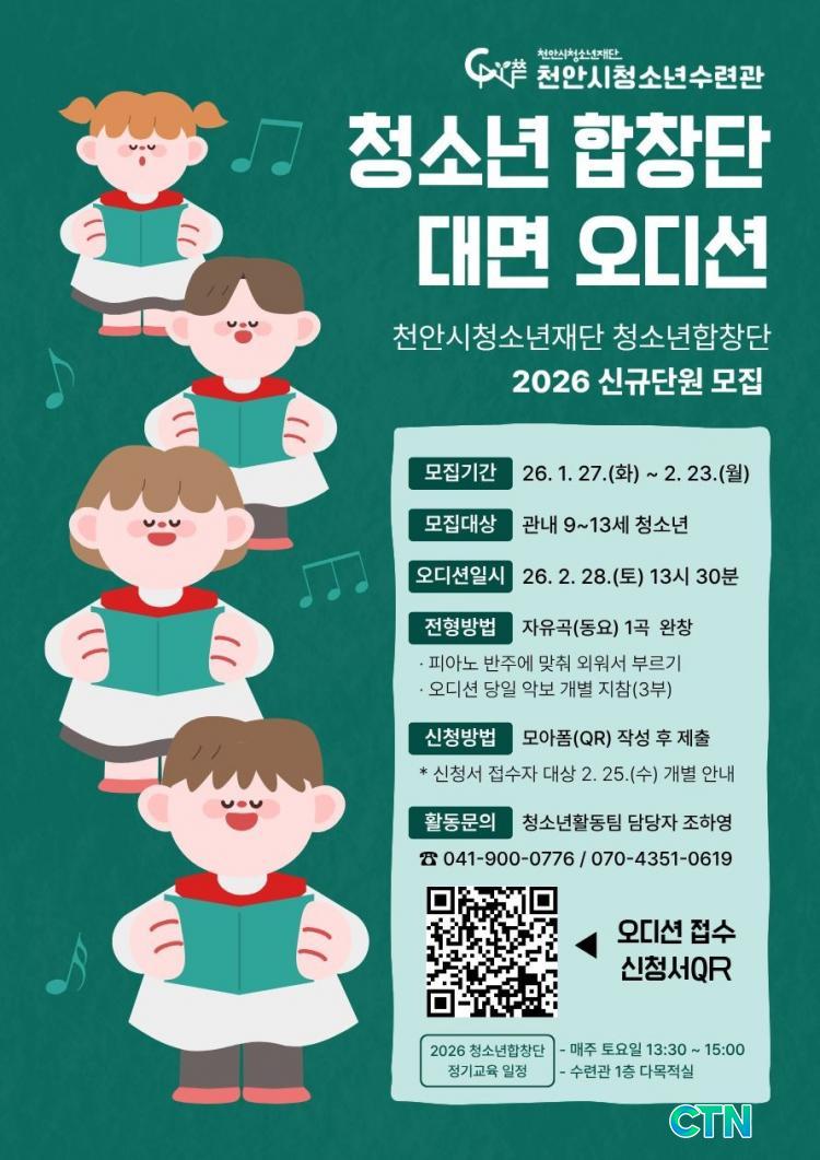[õ¾È/CTN] °Çö¼ö ±âÀÚ = õ¾ÈÀÇ ÇÏ´ÃÀ» ¾Æ¸§´Ù¿î ÈÀ½À¸·Î ¼ö³õÀ» ¹Ì·¡ÀÇ ¿¹¼ú°¡µéÀÌ ¹«´ë À§·Î ¼ÒȯµÈ´Ù. (Àç)õ¾È½Ãû¼Ò³âÀç´Ü õ¾È½Ãû¼Ò³â¼ö·Ã°üÀº û¼Ò³âµéÀÇ ¿¹¼úÀû °¨¼ö¼ºÀ» Ű¿ì°í ÀÚ±âÇ¥Çö ´É·ÂÀ» Çâ»óÇϱâ À§ÇÑ ¡®2026 õ¾È½Ãû¼Ò³âÀç´Ü û¼Ò³âÇÕâ´Ü¡¯ ½Å±Ô ´Ü¿øÀ» ¿À´Â 2¿ù 24ÀϱîÁö ¸ðÁýÇÑ´Ù°í ¹àÇû´Ù.