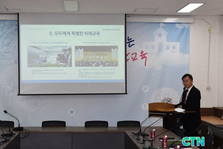 ƯÈ÷ À̹ø ÀÚ¸®¿¡¼ ±èÁö¿ë ±³À°ÀåÀº Á÷Á¢ 2026 ¼»êÁÖ¿ä¾÷¹«°èȹÀ» ¼³¸íÇϸç "±³À°Àº ÇÏ·ç¾ÆÄ§¿¡ ¿Ï¼ºµÇ´Â °ÍÀÌ ¾Æ´Ï¶ó, Áö¿ªÀÌ ÇÔ²² ÃàÀûÇØ ¿Â °æÇè À§¿¡¼ ´ÙÀ½ ¼¼´ë¸¦ ÁغñÇÏ´Â °úÁ¤"À̶ó¸ç "ÀüÁ÷ ±³À°Àå´ÔµéÀÇ ÁöÇý¿Í Á¶¾ðÀº Áö±ÝÀÇ Á¤Ã¥À» ´õ¿í ´Ü´ÜÇÏ°Ô ¸¸µé°í, ¾ÆÀ̵éÀÇ ¹Ì·¡¸¦ ÁغñÇÏ´Â µ¥ Å« ÈûÀÌ µÈ´Ù"°í °Á¶Çß´Ù. À̾î "±³À°ÀÇ ¹æÇâ°ú °¡Ä¡¸¦ ÇÔ²² °øÀ¯Çϸç, ¼»ê±³À°Àº Çлý ÇÑ ¸í ÇÑ ¸íÀÇ »î°ú ¼ºÀåÀ» Á߽ɿ¡ µÎ°í Áö¿ª°ú ÇÔ²² ¹Ì·¡¸¦ ¼³°èÇØ ³ª°¡°Ú´Ù"°í ¹àÇû´Ù.