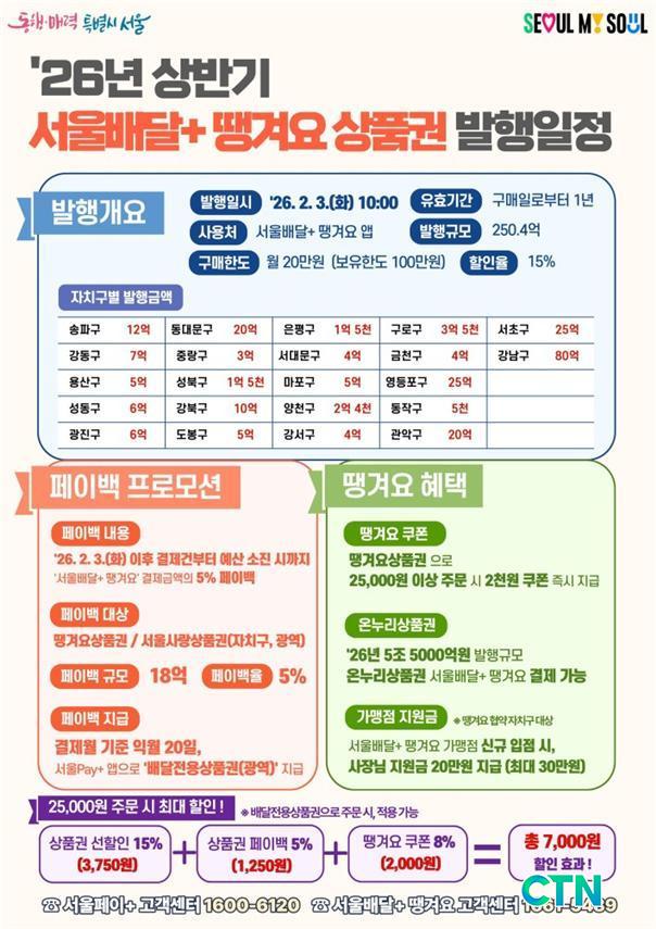 [¼¿ï/CTN]°¡±ÝÇö ±âÀÚ= ¼¿ï½Ã°¡ ¼³ ¸íÀýÀ» ¾ÕµÎ°í Áö¿ª ¼Òºñ ÁøÀÛ°ú ½Ã¹Î ºÎ´ã ¿Ïȸ¦ À§ÇØ ÃÑ 3,073¾ï ¿ø ±Ô¸ðÀÇ ¡®¼¿ï»ç¶û»óǰ±Ç¡¯À» ¹ßÇàÇÑ´Ù. À̹ø »óǰ±ÇÀº ¹è´Þ Àü¿ë°ú ÀÚÄ¡±¸ Àü¿ë µÎ Á¾·ù·Î ³ª´µ¸ç, ÇÒÀÎÀ²Àº ÃÖ¼Ò 5%¿¡¼ ÃÖ´ë 15%±îÁö Àû¿ëµÈ´Ù.