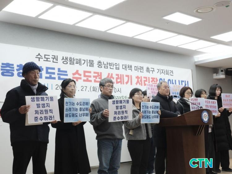 Ãæ³²È¯°æ¿îµ¿¿¬ÇÕÀº Áö³ 27ÀÏ Ãæ³²µµÃ» ºê¸®Çνǿ¡¼ ±âÀÚȸ°ßÀ» ¿°í "Ãæ³²Àº ¼öµµ±ÇÀÇ ¾²·¹±â ó¸®ÀåÀÌ ¾Æ´Ï´Ù"¶ó¸ç ½Ã±ÞÇÑ ´ëÃ¥ ¸¶·ÃÀ» Ã˱¸Çß´Ù / Ãæ³²È¯°æ¿îµ¿¿¬ÇÕ Á¦°ø