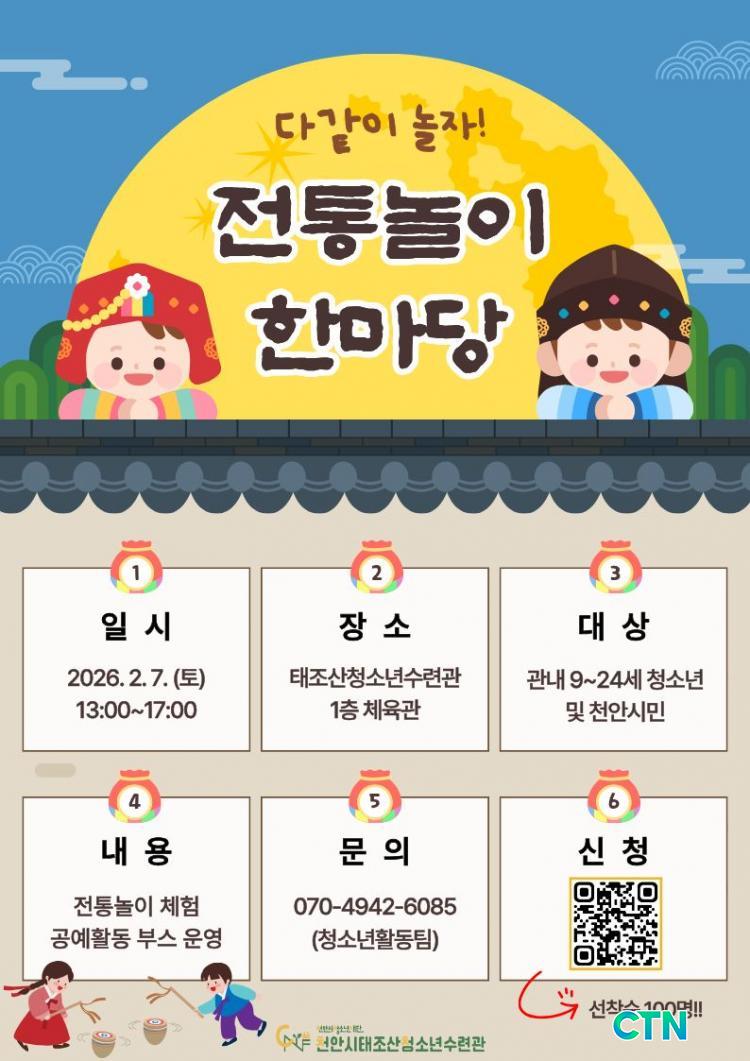 (Àç)õ¾È½Ãû¼Ò³âÀç´Ü õ¾È½ÃÅÂÁ¶»êû¼Ò³â¼ö·Ã°üÀº ¼³ ¸íÀýÀ» ¸Â¾Æ ¿À´Â 2¿ù 7ÀÏ ¼ö·Ã°ü üÀ°°ü¿¡¼ ¡®ÀüÅë³îÀÌ ÇѸ¶´ç¡¯À» ¿î¿µÇÑ´Ù°í 30ÀÏ ¹àÇû´Ù. À̹ø Çà»ç´Â ¼¼´ë °£ ¼ÒÅëÀ» Ȱ¼ºÈÇϰí û¼Ò³âµéÀÌ ÀüÅë¹®ÈÀÇ °¡Ä¡¸¦ Á÷Á¢ °æÇèÇÒ ¼ö ÀÖµµ·Ï ¸¶·ÃµÈ üÇèÇü ÇÁ·Î±×·¥ÀÌ´Ù.