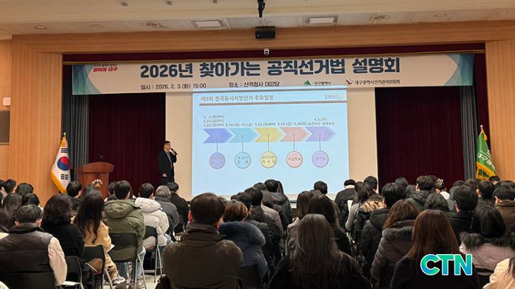 [´ë±¸/CTN]À̼öÇö ±âÀÚ= ´ë±¸±¤¿ª½Ã´Â 6¿ù 3ÀÏ ½Ç½ÃµÇ´Â 'Á¦9ȸ Àü±¹µ¿½ÃÁö¹æ¼±°Å'¸¦ ¾ÕµÎ°í °ø¹«¿øÀÇ Á¤Ä¡Àû Á߸³À» ´ÙÁüÇÏ°í °øÁ÷¼±°Å¹ý ÀÌÇØµµ¸¦ ³ôÀ̱â À§ÇØ, 2¿ù 3ÀÏ ½Ãû »ê°Ýû»ç¿¡¼ 'ã¾Æ°¡´Â °øÁ÷¼±°Å¹ý ¼³¸íȸ'¸¦ °³ÃÖÇß´Ù°í ¹àÇû´Ù.