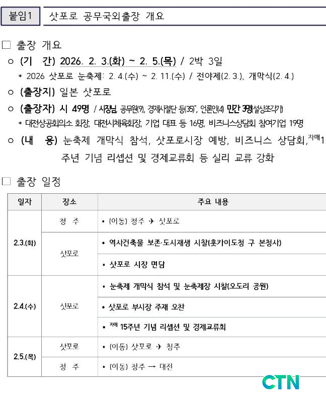 µÑ° ³¯ÀÇ ÇÙ½É ÀÏÁ¤Àº »ñÆ÷·Î ´«ÃàÁ¦ °³¸·½Ä Âü¼®°ú ÃàÁ¦Àå ½ÃÂûÀÌ´Ù. ±¹Á¦Çà»ç ¿î¿µ »ç·Ê °øÀ¯¶ó´Â ¼³¸íÀÌÁö¸¸, Á¤Ã¥ Çù¾à, °øµ¿ ÇÁ·ÎÁ§Æ®, ¿¹»ê ¿¬°è °èȹ µî ½ÇÁú Çù·Â ³»¿ëÀº ÀÏÁ¤Ç¥ ¾îµð¿¡¼µµ È®ÀεÇÁö ¾Ê´Â´Ù.