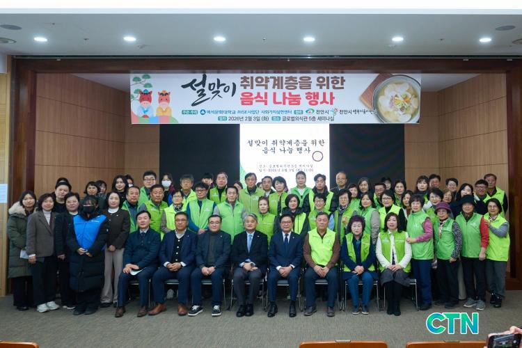 3ÀÏ ±è¼®ÇÊ Ãµ¾È½ÃÀå ±ÇÇÑ´ëÇà ºÎ½ÃÀå°ú ÁÖÈñö ¹é¼®¹®È´ë ÃѰýºÎÃÑÀå, ÀÌ¿µ¿ì ÇູŰ¿òÁö¿ø´Ü ÇùÀÇȸÀåÀÌ ¹é¼®¹®È´ëÇб³ ±Û·Î¹ú¿Ü½Ä°ü¿¡¼ ¿¸° ¡®¼³¸ÂÀÌ Ãë¾à°èÃþ À½½Ä ³ª´® Çà»ç¡¯¿¡ Âü¿©ÇØ ±â³ä»çÁøÀ» ÃÔ¿µÇϰí ÀÖ´Ù.