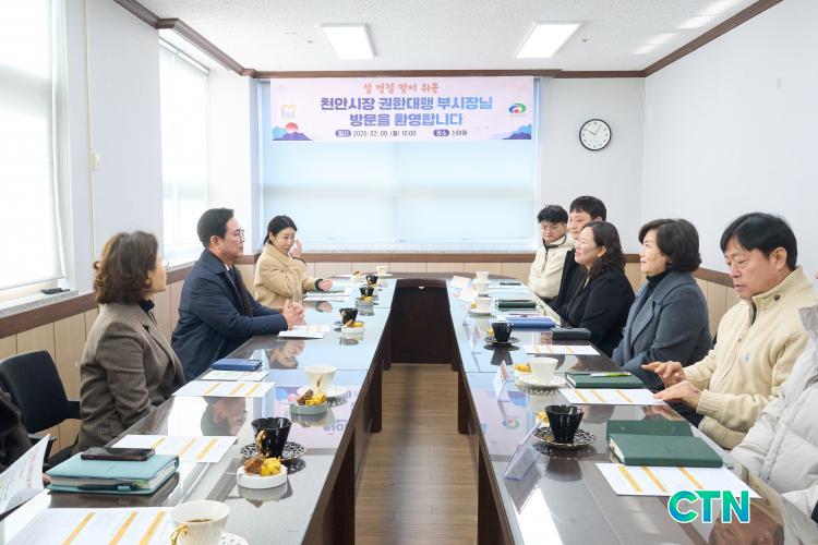 9ÀÏ ±è¼®ÇÊ Ãµ¾È½ÃÀå ±ÇÇÑ´ëÇà ºÎ½ÃÀåÀÌ ½Å¾Æ¿øÀ» ¹æ¹®ÇØ ½Ã¼³ ÀÔ¼Ò ¾Æµ¿°ú ÇöÀå Á¾»çÀÚµéÀ» °Ý·ÁÇϰí ÀÖ´Ù.