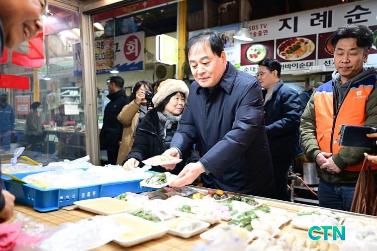 ±èõ½Ã(½ÃÀå ¹è³«È£)´Â ¼³ ¿¬ÈÞ¸¦ ¾ÕµÎ°í ¹°°¡ »ó½Â°ú °æ±â ħü·Î ¾î·Á¿òÀ» °Þ°í ÀÖ´Â ÀüÅë½ÃÀå »óÀεéÀ» °Ý·ÁÇϰí Áö¿ª »ó±Ç¿¡ Ȱ·ÂÀ» ºÒ¾î³Ö±â À§ÇØ ÆòȽÃÀå°ú Ȳ±Ý½ÃÀå¿¡¼ ¼³¸ÂÀÌ ÀüÅë½ÃÀå À庸±â Çà»ç¸¦ ½Ç½ÃÇß´Ù. / »çÁøÁ¦°ø ±èõ½Ã