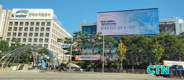 Çѱ¹¼öÀÚ¿ø°ø»ç(»çÀå À±¼®´ë) º»»ç Á¤¹® ¾Õ¿¡ ±ÔÁ¤µµ ¹«½ÃÇÑ Ã¤ ¼³Ä¡µÈ ÃÊ´ëÇü LED Àü±¤ÆÇ,´ëÀü ´ë´ö±¸(±¸Ã»Àå ÃÖÃæ±Ô)°¡ ÀÚÄ¡´ÜüÀÇ ÇàÁ¤·ÂÀ» Æ÷±âÇÑ Å¹»óÇàÁ¤ÀÇ Ç¥º»À̶ó´Â ÁöÀûÀÌ Á¦±âµÆ´Ù. ¨ÏÁ¤¹ÎÁØ ±âÀÚ