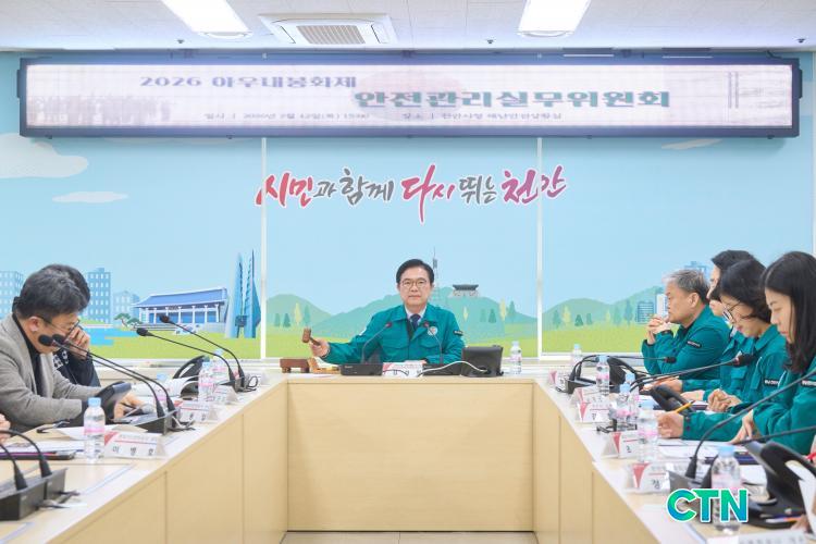 [õ¾È/CTN]°Çö¼ö ±âÀÚ = õ¾È½Ã°¡ ¿À´Â 28ÀÏ °³ÃÖ ¿¹Á¤ÀÎ 2026 õ¾È ¾Æ¿ì³»ºÀÈÁ¦ÀÇ ¾ÈÀüÇÑ ¿î¿µÀ» À§ÇØ À¯°ü±â°ü°ú ¼ÕÀâ°í ºóÆ´¾ø´Â ¾ÈÀü¸Á ±¸Ãà¿¡ ³ª¼±´Ù.