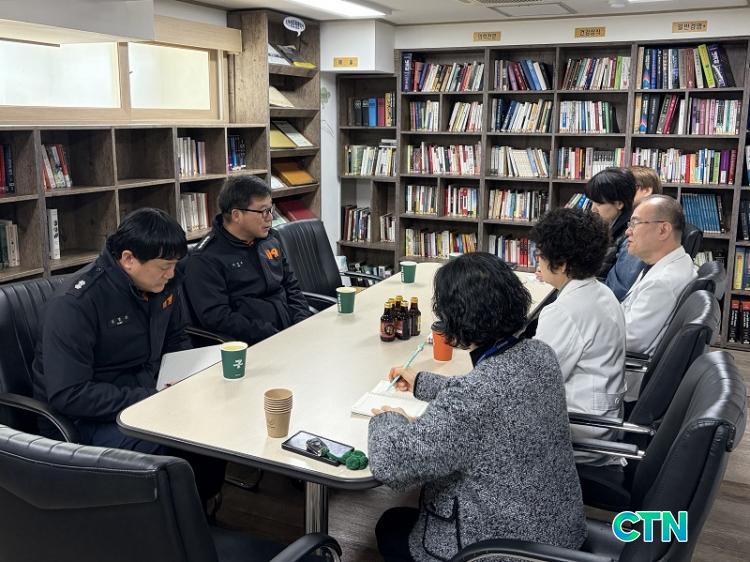 ¿Áõ¼Ò¹æ¼ °ü°èÀÚµéÀÌ ¿Áõ¼º¸ðº´¿øÀ» ¹æ¹®ÇØ ¼³ ¿¬ÈÞ ÀÀ±ÞÀÇ·á ´ëÀÀ¿¡ ´ëÇÑ ÇùÀǸ¦ Çϰí ÀÖ´Ù. / »çÁøÁ¦°ø ¿Áõ¼Ò¹æ¼