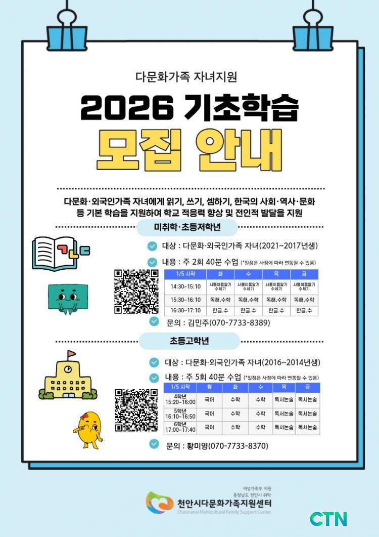 [õ¾È/CTN] °Çö¼ö ±âÀÚ = õ¾È½Ã°¡ ±Û·Î¹ú Æ÷¿ë µµ½Ã·Î ¼ºÀåÇÏ´Â °¡¿îµ¥, ´Ù¹®È ¹× ¿Ü±¹ÀÎ °¡Á· ÀÚ³àµéÀÌ Çѱ¹ »çȸÀÇ ÀÏ¿øÀ¸·Î ´ç´çÈ÷ »Ñ¸® ³»¸± ¼ö ÀÖµµ·Ï µ½´Â ±³À°ÀÇ ÀåÀÌ ¿·È´Ù. õ¾È½Ã´Ù¹®È°¡Á·Áö¿ø¼¾ÅÍ(¼¾ÅÍÀå À±¿¬ÇÑ)´Â ´Ù¹®È ÀÚ³àµéÀÇ Çб³»ýȰ ÀûÀÀ°ú ÇÑ±Û ±âÃÊ ÇнÀ ´É·Â Çâ»óÀ» À§ÇÑ ¡®±âÃÊÇнÀÁö¿ø »ç¾÷¡¯À» º»°ÝÀûÀ¸·Î ¿î¿µÇϸç Áö¿ª »çȸÀÇ Å« È£ÀÀÀ» ¾ò°í ÀÖ´Ù.