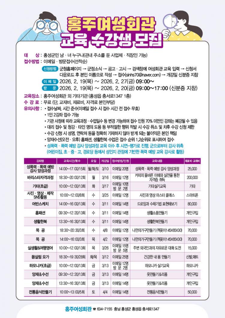 '2026³â »ó¹Ý±â ±³À°°úÁ¤' ¼ö°»ý ¸ðÁý È«º¸¹°/»çÁøÁ¦°ø=È«¼º±º