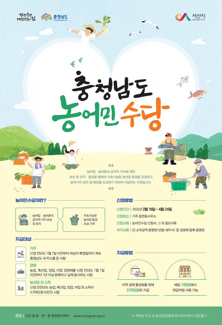 [¼»ê/CTN]°¡±ÝÇö ±âÀÚ = Ãæ³² ¼»ê½Ã´Â 2¿ù 19ÀϺÎÅÍ 4¿ù 24ÀϱîÁö 2026³â ³ó¾î¹Î¼ö´ç ½ÅûÀ» ¹Þ´Â´Ù°í ¹àÇû´Ù.