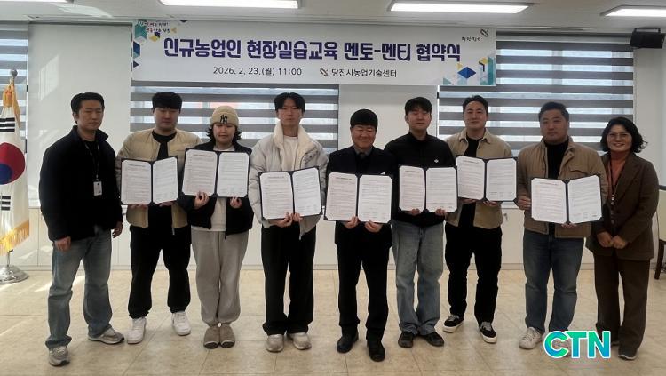 [´çÁø/CTN]°¡±ÝÇö ±âÀÚ = ´çÁø½Ã(½ÃÀå ¿À¼ºÈ¯)´Â Áö³ 23ÀÏ ³ó¾÷±â¼ú¼¾ÅÍ È¸Àǽǿ¡¼ ¿¬¼ö»ý 4¸í°ú ¼±µµ ³ó°¡ ´ëÇ¥ 2¸íÀÌ Âü¼®ÇÑ °¡¿îµ¥ ½Å±Ô³ó¾÷ÀÎ ÇöÀå½Ç½À ±³À° ¸àÅä-¸àƼ Çù¾à½ÄÀ» °¡Á³´Ù°í 24ÀÏ ¹àÇû´Ù.