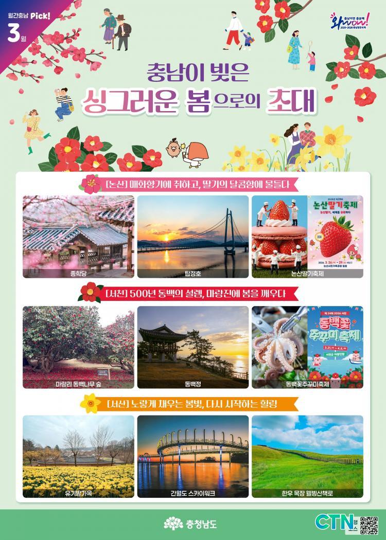 [Ãæ³²/CTN]ÇѼºÁø ±âÀÚ = Ãæ³²µµ°¡ 'Ãæ³²ÀÌ ºúÀº ½Ì±×·¯¿î º½À¸·ÎÀÇ ÃÊ´ë'¸¦ ÁÖÁ¦·Î ÇÑ '¿ù°£ Ãæ³² 3¿ùÈ£'¸¦ ÅëÇØ µµ³» ¾Æ¸§´Ù¿î º½ dz°æ°ú Á¦Ã¶ ¸Ô°Å¸®¸¦ ´ãÀº Ưº°ÇÑ ¿©Çà ÀÏÁ¤À» °ø°³Çß´Ù.
