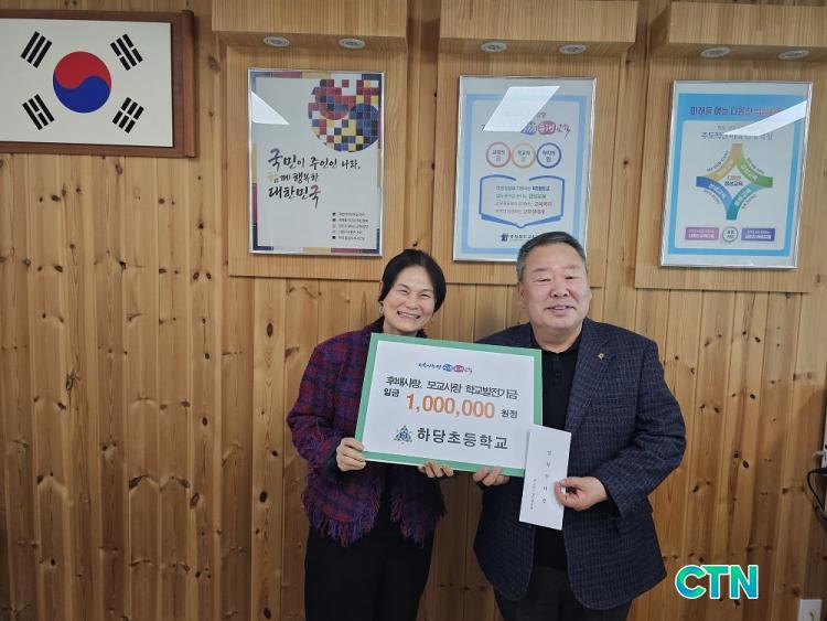 [±³À°/CTN]À̺´Á¾ ±âÀÚ = À½¼º ¿ø³²¸é ±â¾÷ÀÎÇùÀÇȸ ȸÀåÀÌÀÚ ÇÏ´çÃʵîÇб³ Ãѵ¿¹®È¸Àå(ÀӱǼø)Àº 25ÀÏ ÇÏ´çÃʵîÇб³¸¦ ¹æ¹®ÇØ 'ÈÄ¹è »ç¶û, Çб³ »ç¶û'À» À§ÇØ Çб³¹ßÀü±â±Ý ¹é¸¸¿øÀ» ±âŹÇß´Ù.