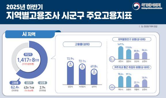 ±¹°¡µ¥ÀÌÅÍó°¡ ¹ßÇ¥ÇÑ¡®2025³â ÇϹݱâ Áö¿ªº° °í¿ëÁ¶»ç ½Ã±º±¸ ÁÖ¿ä °í¿ëÁöÇ¥¡¯°á°ú¿¡ µû¸£¸é, ´çÁø½Ã´Â 2025³â ÇϹݱ⠴çÁø½Ã °í¿ë·üÀº 72.9%¸¦ ±â·ÏÇß´Ù. ÀÌ´Â Áö³ÇØ »ó¹Ý±â¿¡ ÀÌ¾î ¿¬ÀÌÀº 1À§·Î Áö¿ª°æÁ¦ÀÇ ²ÙÁØÇÑ ¼ºÀå¼¼¿Í ü°èÀûÀÎ ÀÏÀÚ¸® Á¤Ã¥ÀÇ °á½Ç·Î Æò°¡µÈ´Ù.