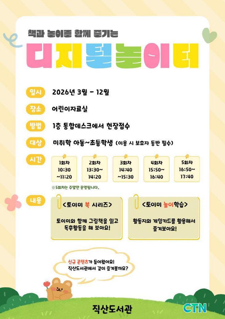 [õ¾È/CTN] °Çö¼ö ±âÀÚ = õ¾È½Ã Á÷»êµµ¼°üÀÌ Ã¥ ¼ÓÀÇ Æò¸éÀûÀÎ ¼¼»óÀ» ³Ñ¾î ¾ÆÀ̵éÀÌ Á÷Á¢ º¸°í µè°í ¸¸Áö´Â ÀÔüÀûÀÎ µ¶¼ °æÇèÀ» ¼±»çÇÑ´Ù. µµ¼°üÀº Áö³ÇØ ¿î¿µµÈ µðÁöÅÐ ³îÀÌÅÍ¿¡ ´ëÇÑ ½Ã¹ÎµéÀÇ ³ôÀº È£ÀÀ¿¡ ÈûÀÔ¾î ³»´ÞºÎÅÍ ÄÜÅÙÃ÷¸¦ ´ëÆø º¸°ÇÏ°í ¿î¿µ ½Ã°£À» È®´ëÇÑ´Ù°í Áö³´Þ 27ÀÏ ¹àÇû´Ù.