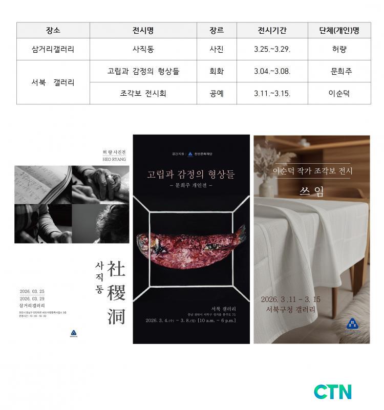 [õ¾È/CTN] °Çö¼ö ±âÀÚ = õ¾ÈÀÇ ÀÏ»ó °ø°£ÀÌ ¿¹¼úÀÇ Çâ±â·Î ä¿öÁø´Ù. (Àç)õ¾È½Ã¹®ÈÀç´ÜÀº Áö¿ª ¿¹¼úÀεéÀÇ Ã¢ÀÛ È°µ¿À» Áö¿øÇÏ°í ½Ã¹ÎµéÀÌ ÀÏ»ó ¼Ó¿¡¼ ¹®È¸¦ ÇâÀ¯ÇÒ ¼ö ÀÖµµ·Ï µ½´Â ÇÑ »Â °¶·¯¸® °ø°£Áö¿ø»ç¾÷ÀÇ ÀÏȯÀ¸·Î ¿À´Â 3¿ù 4ÀϺÎÅÍ 29ÀϱîÁö ´Ùä·Î¿î Àü½Ã¸¦ °³ÃÖÇÑ´Ù°í Áö³´Þ 27ÀÏ ¹àÇû´Ù. Àç´ÜÀº ±×µ¿¾È »ï°Å¸®°¶·¯¸®¿Í ¼ºÏ°¶·¯¸®¸¦ °ÅÁ¡À¸·Î Áö¿ª ¿¹¼ú°¡µé¿¡°Ô´Â ¼ÒÁßÇÑ Àü½Ã ±âȸ¸¦, ½Ã¹Îµé¿¡°Ô´Â ¹®ÅÎ ³·Àº ¹®È °ø°£À» Á¦°øÇØ ¿Ô´Ù.
