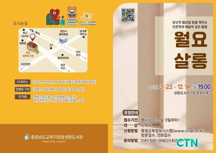 [õ¾È/CTN] °Çö¼ö ±âÀÚ = ÃæÃ»³²µµ±³À°Áö¿øÃ»¼ºÈ¯µµ¼°üÀÌ ¿ù¿äÀÏ Àú³á, ÁöÄ£ ÀÏ»ó¿¡ µû¶æÇÑ À§·Î¿Í ±íÀº »çÀ¯¸¦ ¼±»çÇϴ Ưº°ÇÑ Àι®¡¤¿¹¼úÀÇ ÀåÀ» ¸¶·ÃÇÕ´Ï´Ù. µµ¼°üÀº ¿À´Â 3¿ùºÎÅÍ 12¿ù±îÁö ¸Å¿ù ÇÑ Â÷·Ê ¿ù¿äÀÏ Àú³á 7½Ã, 1Ãþ ¹®È¸¶·ç¿¡¼ Àι®Çаú À½¾ÇÀÌ ¾î¿ì·¯Áø º¹ÇÕ ±âȹ ÇÁ·Î±×·¥ ¿ù¿ä»ì·ÕÀ» ¿î¿µÇÑ´Ù°í ¹àÇû½À´Ï´Ù. À̹ø Çà»ç´Â °¿¬°ú À½¾Çȸ¸¦ °áÇÕÇÑ ÇüÅÂÀÇ ¹®È¿¹¼ú Çà»ç·Î, Áö¿ª ÁÖ¹ÎÀ̶ó¸é ´©±¸³ª Âü¿©ÇØ ¹Ù»Û ÀÏ»ó ¼Ó¿¡¼ Àι®ÇÐÀû °¨¼ö¼ºÀ» ÃæÀüÇÏ°í ¿¹¼úÀû ¼±À²À» Áñ±æ ¼ö ÀÖµµ·Ï ±âȹµÇ¾ú½À´Ï´Ù.
