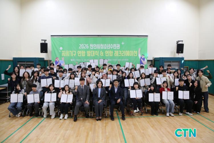 [õ¾È/CTN] °Çö¼ö ±âÀÚ = õ¾È½Ã û¼Ò³âµéÀÌ Áö¿ª»çȸÀÇ ½ÇÁúÀûÀÎ ¿î¿µ ÁÖü·Î ¼ºÀåÇϱâ À§ÇÑ º»°ÝÀûÀÎ Çຸ¿¡ ³ª¼¹´Ù. (Àç)õ¾È½Ãû¼Ò³âÀç´Ü õ¾È½Ãû¼Ò³â¼ö·Ã°üÀº Áö³´Þ 28ÀÏ ¼ö·Ã°ü üÀ°È°µ¿Àå¿¡¼ û¼Ò³â ÀÚÄ¡±â±¸ ¿¬Çչߴë½ÄÀ» °³ÃÖÇϰí ÀÚÄ¡±â±¸ û¼Ò³âµé¿¡°Ô À§ÃËÀåÀ» ¼ö¿©Çß´Ù°í ¹àÇû´Ù. À̹ø ¹ß´ë½ÄÀº ¼ö·Ã°ü ³»¿¡¼ Ȱµ¿ÇÏ´Â ´Ù¾çÇÑ Ã»¼Ò³â Âü¿© ¹× ÀÚÄ¡±â±¸ÀÇ °ø½ÄÀûÀÎ Ãâ¹üÀ» ´ë³»¿Ü¿¡ ¾Ë¸®°í, ±â±¸ °£ÀÇ È°¹ßÇÑ ±³·ù¿Í ¼Ò¼Ó°¨À» ³ôÀ̱â À§ÇØ ¸¶·ÃµÆ´Ù.
