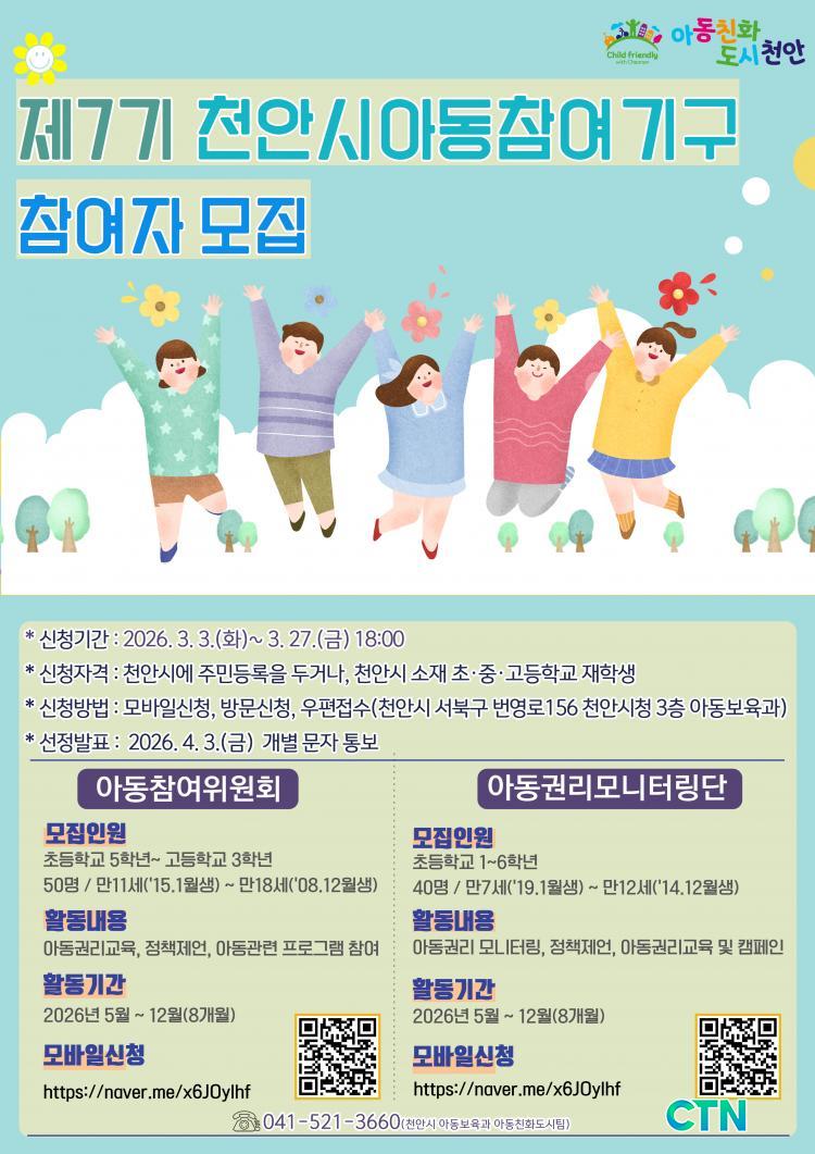 [õ¾È/CTN] °Çö¼ö ±âÀÚ = õ¾È½Ã°¡ ¾Æµ¿ÀÇ ±Ç¸®¸¦ º¸È£ÇÏ°í ¾ÆÀ̵éÀÌ ½ÃÁ¤¿¡ Á÷Á¢ Âü¿©ÇÒ ¼ö ÀÖ´Â ±âȸ¸¦ ³ÐÈ÷±â À§ÇØ ¡®Á¦7±â ¾Æµ¿Âü¿©±â±¸¡¯ ±¸¼º¿¡ ³ª¼±´Ù. ½Ã´Â ¾Æµ¿ÀÇ Âü¿©±Ç ½ÇÇö°ú ±Ç¸® ÁõÁøÀ» À§ÇØ È°µ¿ÇÒ Âü¿©ÀÚ¸¦ ¿À´Â 27ÀϱîÁö °ø°³ ¸ðÁýÇÑ´Ù°í 3ÀÏ ¹àÇû´Ù.