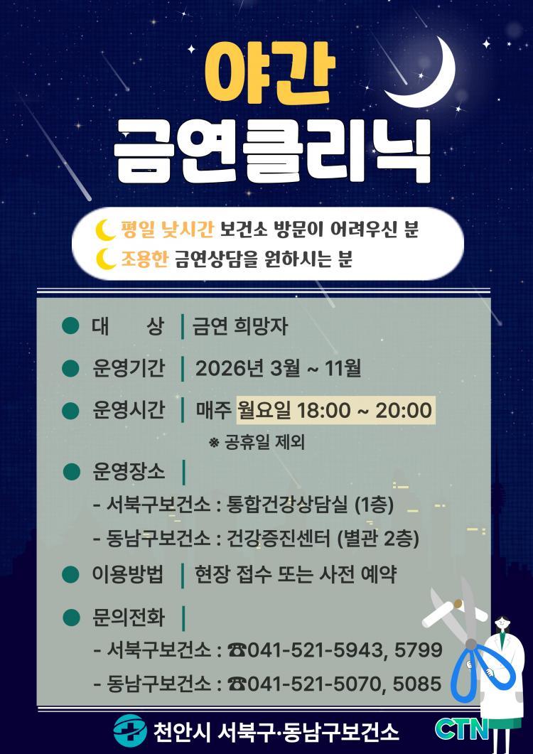 [õ¾È/CTN] °Çö¼ö ±âÀÚ = õ¾È½Ã°¡ ±Ù¹« µîÀ¸·Î ³· ½Ã°£´ë º¸°Ç¼Ò ¹æ¹®ÀÌ ¾î·Á¿î ½Ã¹ÎµéÀ» À§ÇØ ÀÌ´ÞºÎÅÍ ¿À´Â 11¿ù±îÁö ¾ß°£ ±Ý¿¬Å¬¸®´ÐÀ» ¿î¿µÇÑ´Ù. À̹ø ÇÁ·Î±×·¥Àº ±Ý¿¬ ÀÇÁö´Â ÀÖÀ¸³ª ½Ã°£Àû Á¦¾àÀ¸·Î »ó´ãÀ» ¹ÞÁö ¸øÇß´ø Á÷ÀåÀÎ µî Èí¿¬Àڵ鿡°Ô ¸ÂÃãÇü Áö¿øÀ» Á¦°øÇϱâ À§ÇØ ¸¶·ÃµÆ´Ù.
