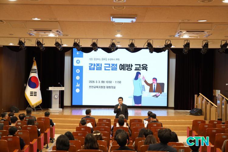 õ¾È±³À°Áö¿øÃ»ÀÌ 3ÀÏ ´ëȸÀǽǿ¡¼ Àü Á÷¿øÀ» ´ë»óÀ¸·Î ±â°üÀå ÁÖ°ü ¡®°©Áú ¿¹¹æ ±³À°¡¯À» ÁøÇàÇϰí ÀÖ´Ù.