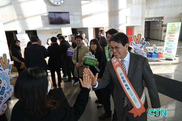 [û¾ç/CTN]ÇѼºÁø ±âÀÚ = û¾ç±º(±º¼ö ±èµ·°ï)ÀÌ 'û·Å ÇÏÀÌÆÄÀ̺ê(Hi-5) ¿îµ¿'°ú 'ÇàÁ¤PRO+(Ç÷¯½º) ¿îµ¿'ÀÌ ÇÔ²²ÇÏ´Â °øµ¿ Ä·ÆäÀÎÀ» Àü°³Çϸç û·ÅÇÑ °øÁ÷¹®È È®»ê°ú '°£ºÎ ¸ð½Ã´Â ³¯' °üÇà ±ÙÀý¿¡ ³ª¼¹´Ù.