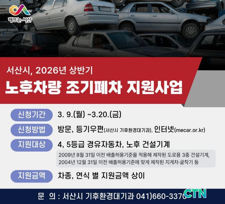 [¼»ê/CTN]°¡±ÝÇö ±âÀÚ = Ãæ³² ¼»ê½Ã°¡ ûÁ¤ÇÑ ´ë±âȯ°æÀ» Á¶¼ºÇϱâ À§ÇØ 2026³â ³ëÈÄÂ÷·® Á¶±âÆóÂ÷ Áö¿ø»ç¾÷À» ÃßÁøÇÑ´Ù°í ¹àÇû´Ù.
