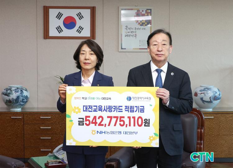 [´ëÀü/CTN]Á¤¹ÎÁØ ±âÀÚ¤Ó´ëÀü½Ã±³À°Ã»Àº Áö³ÇØ °¢±Þ Çб³¿Í »êÇϱâ°ü ¹× ±³Á÷¿øÀÌ ´ëÀü±³À°»ç¶ûÄ«µå¸¦ »ç¿ëÇÏ¿© ¸ðÀº Àû¸³±Ý 5¾ï 4,200¸¸ ¿øÀ» 3¿ù 4ÀÏ NH³óÇùÀºÇà ´ëÀüº»ºÎ·ÎºÎÅÍ Àü´Þ¹Þ¾Ò´Ù°í ¹àÇû´Ù.