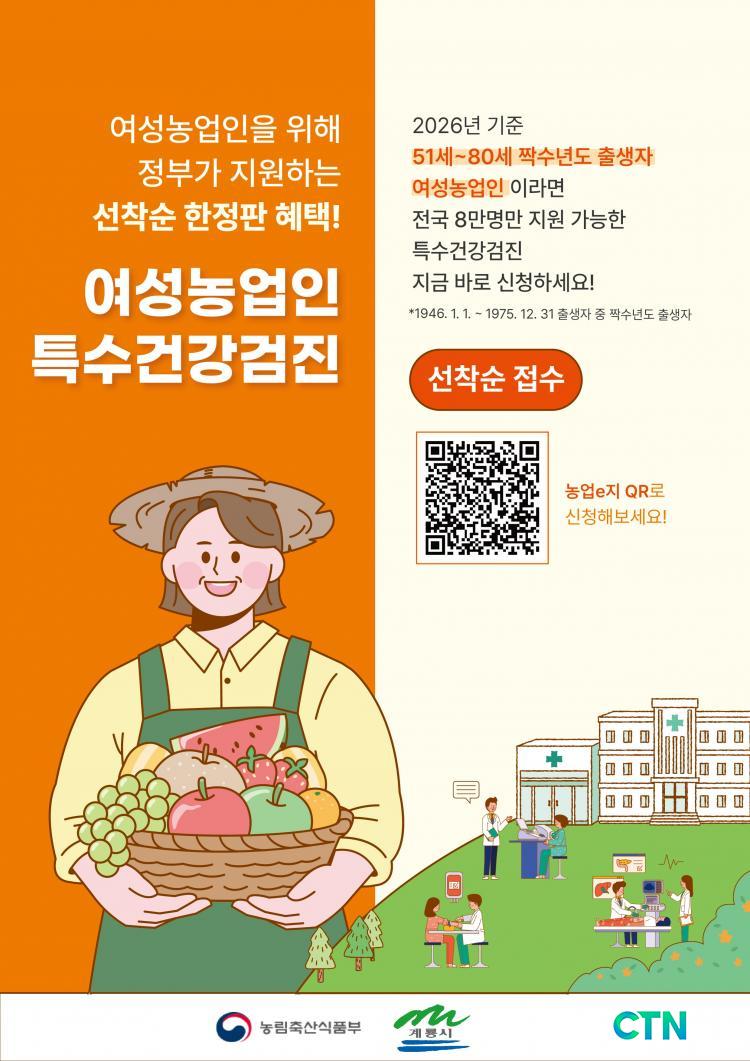 °ËÁø ´ë»óÀº °è·æ½Ã¿¡ °ÅÁÖÇÏ¸ç ³ó¾÷°æ¿µÃ¼¿¡ µî·ÏµÈ ¸¸ 51¼¼¢¦80¼¼ÀÇ ¿©¼º³ó¾÷ÀÎ Áß Â¦¼ö³âµµ Ãâ»ýÀÚÀ̸ç, ³»³â¿¡´Â Ȧ¼ö³âµµ Ãâ»ýÀÚ¸¦ ´ë»óÀ¸·Î ÁøÇàµÉ ¿¹Á¤ÀÌ´Ù.