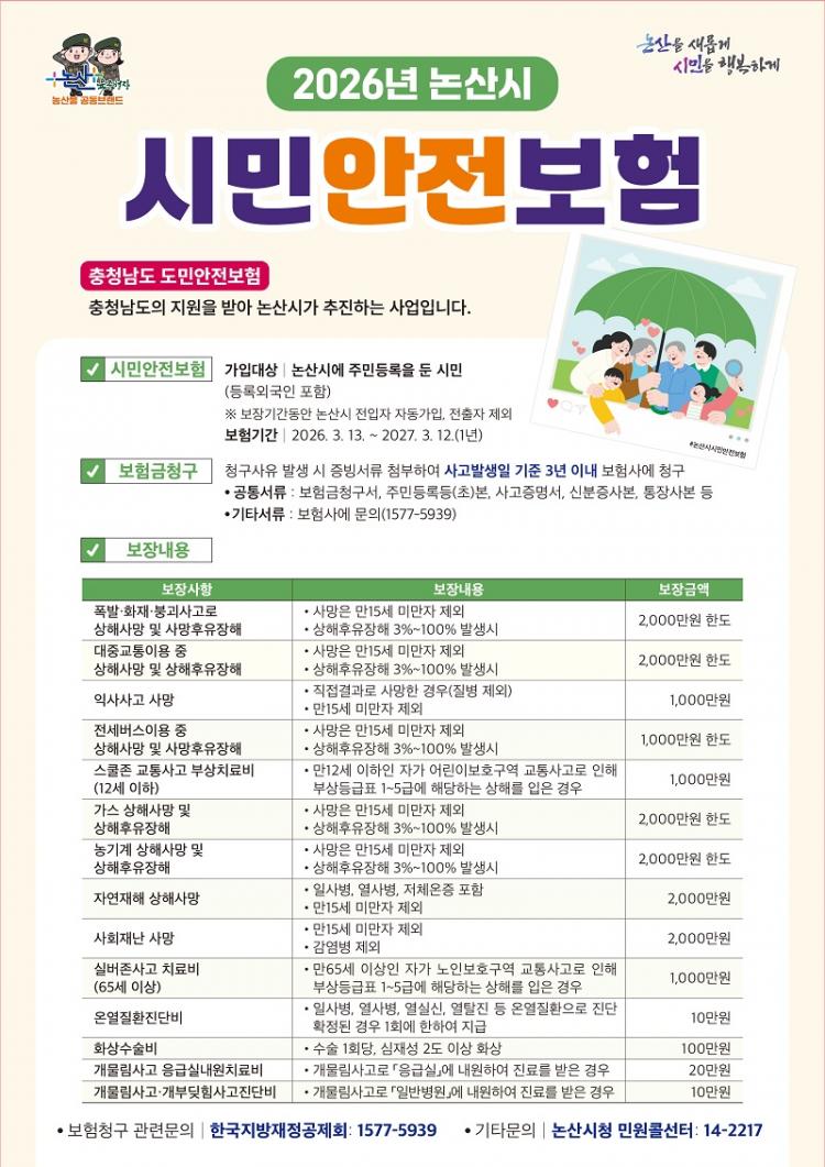 ¶ÇÇÑ, ³í»ê½Ã´Â ½Ã¹Î¾ÈÀüº¸Çè°ú º°µµ·Î 'ÀÚÀü°Åº¸Çè' µµ ¿î¿µÇϰí ÀÖ´Ù. ½Ã¹Î¾ÈÀüº¸Çè°ú µ¿ÀÏÇÏ°Ô ³í»ê½Ã¿¡ ÁÖ¼Ò¸¦ µÎ°í ÀÖÀ¸¸é ÀÚµ¿À¸·Î °¡ÀԵǸç, ÀÚÀü°Å »ç°í·Î ÀÎÇÑ »ç¸Á, ÈÄÀ¯ÀåÇØ, µî 7°³ Ç׸ñ¿¡ ´ëÇØ º¸Àå¹ÞÀ» ¼ö ÀÖ´Ù.