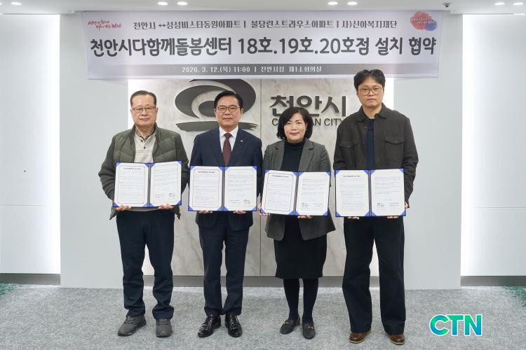 [õ¾È/CTN]°Çö¼ö ±âÀÚ = õ¾È½Ã°¡ ¹Î°ü Çù·ÂÀ» ÅëÇØ ¹æ°ú ÈÄ ÃÊµî µ¹º½ °ø¹éÀ» ÇØ¼ÒÇÏ°í ¾ÆÀÌ Å°¿ì±â ÁÁÀº µµ½Ã ȯ°æÀ» Á¶¼ºÇϱâ À§ÇÑ ±¤Æø Çຸ¸¦ À̾°í ÀÖ´Ù. ½Ã´Â 12ÀÏ ½Ãû Á¦1¼ÒȸÀǽǿ¡¼ ¼º¼ººñ½ºÅ¸µ¿¿ø¡¤ºÒ´ç¸°½ºÆ®¶ó¿ì½º ÀÔÁÖÀÚ´ëǥȸÀÇ, »çȸº¹Áö¹ýÀÎ ½Å¾Æº¹ÁöÀç´Ü°ú ¡®´ÙÇÔ²²µ¹º½¼¾ÅÍ 18¡¤19¡¤20È£Á¡¡¯ ¼³Ä¡¸¦ À§ÇÑ ¹«»óÀÓ´ë Çù¾àÀ» ü°áÇß´Ù.