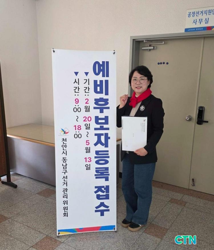 ±¹¹ÎÀÇÈû È«¼öÁ¤ õ¾È(º´) ¿©¼ºÀ§¿øÀåÀÌ 12ÀÏ Ãµ¾È½Ã µ¿³²±¸¼±°Å°ü¸®À§¿øÈ¸¿¡¼ õ¾È½ÃÀÇ¿ø ¼±°Å ¿¹ºñÈĺ¸ µî·ÏÀ» ¸¶ÃÆ´Ù.