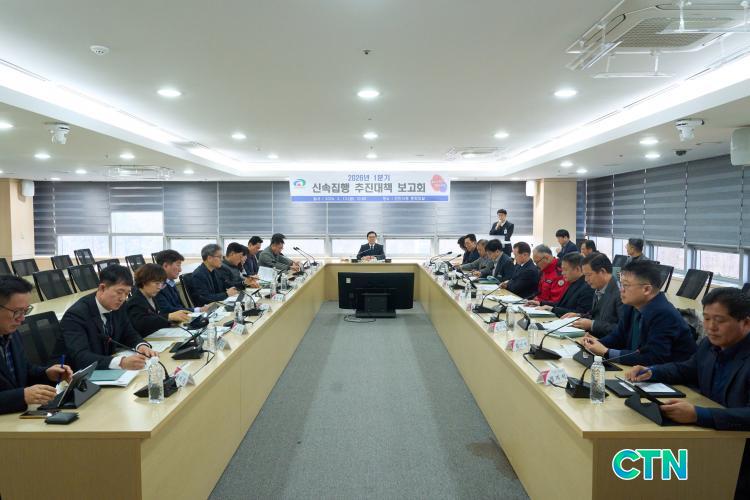 [õ¾È/CTN]°Çö¼ö ±âÀÚ = õ¾È½Ã°¡ °í±Ý¸®¿Í °í¹°°¡·Î À§ÃàµÈ Áö¿ª °æÁ¦ÀÇ È¸º¹ ź·Â¼ºÀ» ³ôÀ̱â À§ÇØ °ø°øºÎ¹® ÀçÁ¤ ½Å¼Ó ÁýÇà¿¡ ¸ðµç ÇàÁ¤·ÂÀ» ÁýÁßÇÏ°í ³ª¼¹´Ù. ½Ã´Â Áö³ 13ÀÏ ½Ãû ÁßȸÀǽǿ¡¼ ±è¼®ÇÊ Ãµ¾È½ÃÀå ±ÇÇÑ´ëÇà ºÎ½ÃÀå ÁÖÀç·Î ¡®2026³â 1ºÐ±â ½Å¼Ó ÁýÇà ÃßÁø´ëÃ¥ º¸°íȸ¡¯¸¦ ¿°í ¹Î»ý °æÁ¦ Ȱ·Â Á¦°í¸¦ À§ÇÑ ³¡Àå Åä·ÐÀ» ÆîÃÆ´Ù.