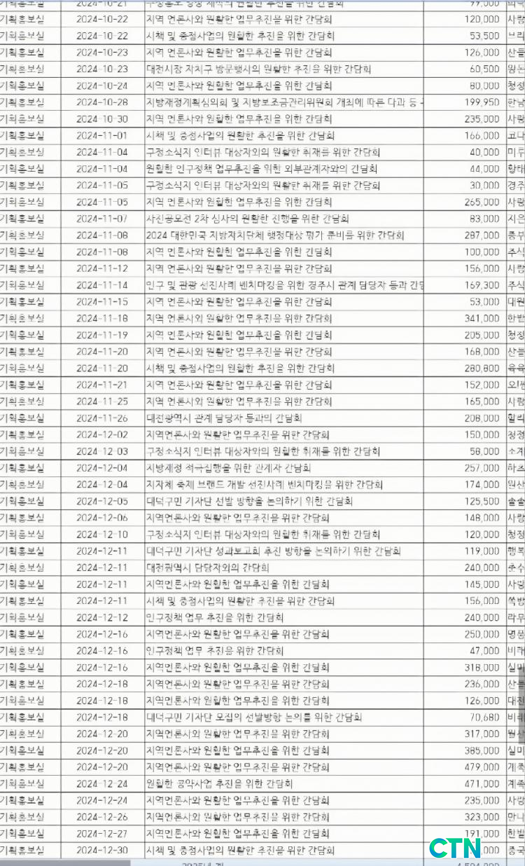 [½ÉÃþÃëÀç/CTN]´ëÀü ´ë´ö±¸(±¸Ã»Àå ÃÖÃæ±Ô)°¡ ¾÷¹«ÃßÁøºñ¸¦ Âɰ³±â °áÁ¦Çϰųª °í°¡ À½½ÄÁ¡¿¡¼ ¹ýÀÎÄ«µå¸¦ ¹Ýº¹ÀûÀ¸·Î »ç¿ëÇÑ Á¤È²ÀÌ È®ÀÎµÇ¸é¼ ¿¹»ê ÁýÇàÀÇ ÀûÀý¼ºÀ» µÑ·¯½Ñ ³í¶õÀÌ Ä¿Áö°í ÀÖ´Ù.