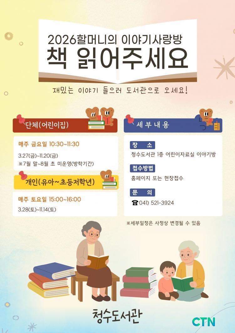 [õ¾È/CTN] °Çö¼ö ±âÀÚ = õ¾È½Ã û¼öµµ¼°üÀÌ ¿À´Â 27ÀϺÎÅÍ ¾î¸°À̵鿡°Ô ±×¸²Ã¥ÀÇ Áñ°Å¿òÀ» ÀüÇÏ°í ¾î¸£½Åµé°úÀÇ Á¤¼Àû ±³°¨À» µ½´Â ÇÒ¸Ó´ÏÀÇ À̾߱⠻ç¶û¹æ, Ã¥ ÀоîÁÖ¼¼¿ä ÇÁ·Î±×·¥À» º»°Ý ¿î¿µÇÑ´Ù.
