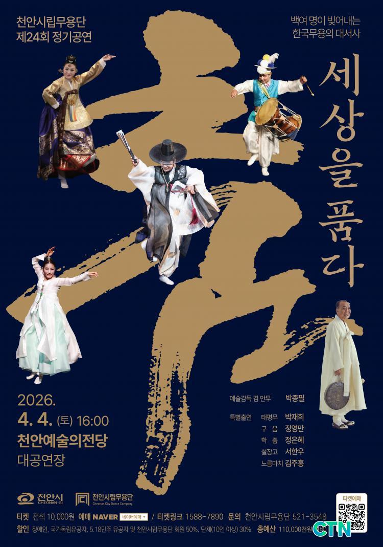 [õ¾È/CTN] °Çö¼ö ±âÀÚ = Çѱ¹ ÀüÅëÃãÀÇ Á¤¼ö¿Í Àΰ£ »îÀÇ ´ë¼»ç½Ã¸¦ ÇÑÀÚ¸®¿¡¼ ¸¸³£ÇÒ ¼ö ÀÖ´Â ±â³äºñÀûÀÎ ¹«´ë°¡ ÆîÃÄÁø´Ù. õ¾È½Ã´Â ³»´Þ 4ÀÏ Ãµ¾È¿¹¼úÀÇÀü´ç ´ë°ø¿¬Àå¿¡¼ õ¾È½Ã¸³¹«¿ë´Ü Á¦24ȸ Á¤±â°ø¿¬ ¡®Ãã, ¼¼»óÀ» ǰ´Ù¡¯¸¦ °³ÃÖÇÏ°í ½Ã¹Îµé¿¡°Ô ÀØÁö ¸øÇÒ °¨µ¿À» ¼±»çÇÒ ¿¹Á¤ÀÌ´Ù.