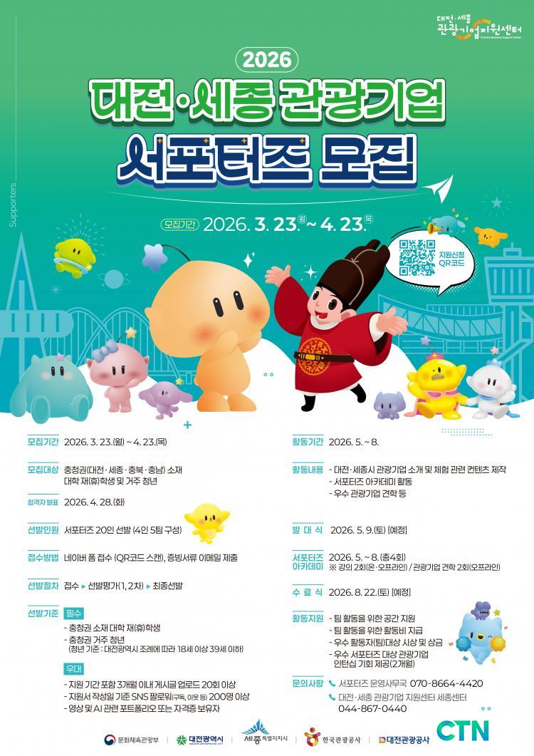 [´ëÀü/CTN]Á¤¹ÎÁØ ±âÀÚ¤Ó´ëÀü°ü±¤°ø»ç´Â 23ÀϺÎÅÍ ³»´Þ 23ÀϱîÁö ´ëÀü·¼¼Á¾ °ü±¤±â¾÷ È«º¸ ÄÜÅÙÃ÷¸¦ Áö¿øÇϱâ À§ÇØ ÃæÃ»±Ç û³â ´ë»óÀ¸·Î ¡®2026 ´ëÀü·¼¼Á¾ °ü±¤±â¾÷ ¼Æ÷ÅÍÁ¸¦ ¸ðÁýÇÑ´Ù°í ¹àÇû´Ù.