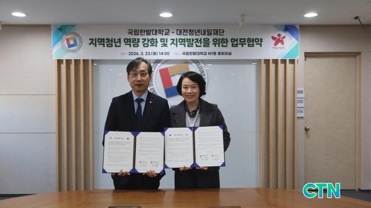 23ÀÏ, ±¹¸³Çѹç´ëÇб³¿Í ´ëÀüû³â³»ÀÏÀç´ÜÀº Áö¿ªÃ»³â ¿ª·® °È ¹× Áö¿ª ¹ßÀüÀ» À§ÇÑ ¾÷¹«Çù¾àÀ» ü°áÇÏ°í ±¹¸³Çѹç´ë ¿À¿ëÁØ ÃÑÀå(¿ÞÂÊ)°ú ´ëÀüû³â³»ÀÏÀç´Ü ±ÇÇü·Ê ´ëÇ¥À̻簡 ±â³äÃÔ¿µÀ» Çϰí ÀÖ´Ù.¨Ï±¹¸³Çѹç´ë