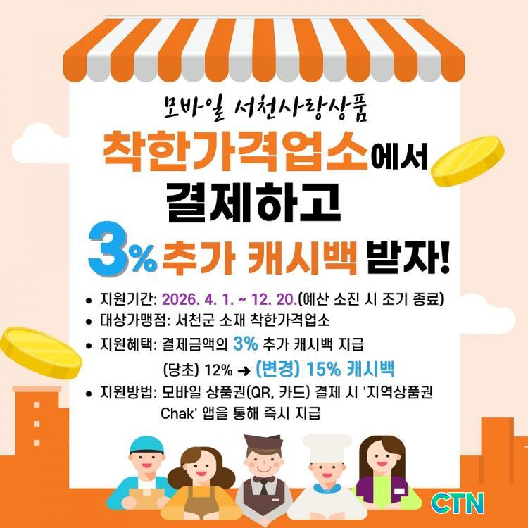 À̹ø »ç¾÷¿¡ µû¶ó ÂøÇѰ¡°Ý¾÷¼Ò¿¡¼ ¸ð¹ÙÀÏ(Ä«µå) ¼Ãµ»ç¶û»óǰ±ÇÀ¸·Î °áÁ¦ÇÒ °æ¿ì, 'Áö¿ª»ç¶û»óǰ±Ç Chak' ¾ÛÀ» ÅëÇØ °áÁ¦±Ý¾×ÀÇ 3%¸¦ Ãß°¡ ij½Ã¹éÀ¸·Î Áö¿ø¹ÞÀ» ¼ö ÀÖ´Ù.