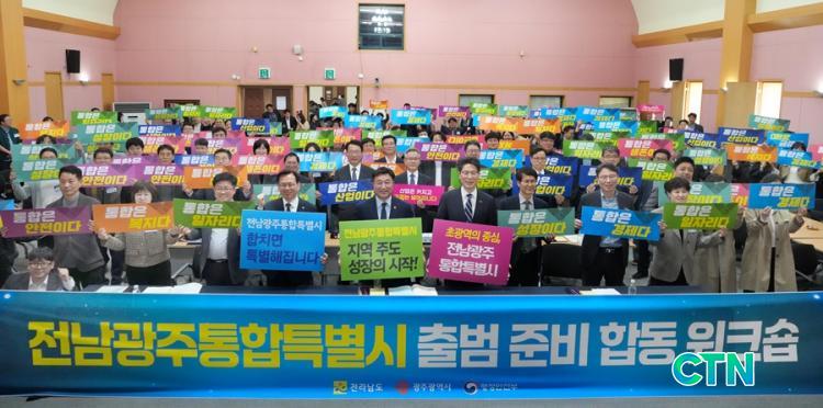 °í±¤¿Ï ±¤ÁÖ½ÃÀå ±ÇÇÑ´ëÇàÀº "Àü³²±¤ÁÖÅëÇÕÆ¯º°½Ã´Â ±¤ÁÖ¿Í Àü³²ÀÇ ¿ª·®À» °áÁýÇØ »õ·Î¿î Áö¿ª¹ßÀü ¸ðµ¨À» ¸¸µå´Â ¿ª»çÀû ÀüȯÁ¡"À̶ó¸ç "½Ã¹ÎÀÌ Ã¼°¨ÇÒ ÅëÇÕ ¼º°ú¸¦ âÃâÇÏ´Â µ¥ ÃÖ¼±À» ´ÙÇϰڴÙ"°í ¸»Çß´Ù.
