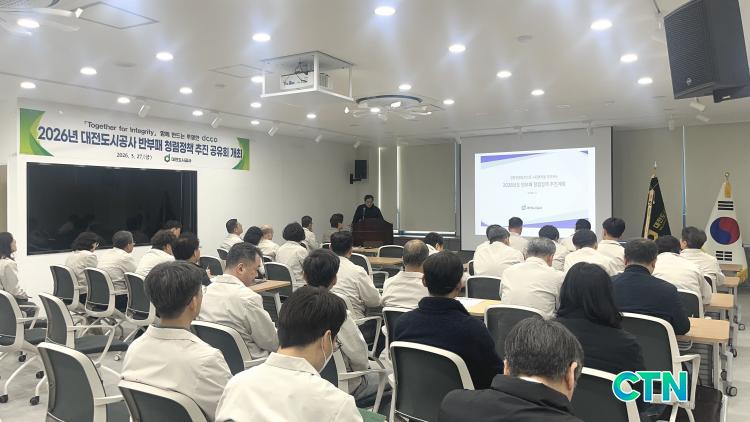 [´ëÀü/CTN]Á¤¹ÎÁØ ±âÀÚ¤Ó´ëÀüµµ½Ã°ø»ç°¡ Áö³ 27ÀÏ º»»ç ¼¼¹Ì³ª½Ç¿¡¼ CEO ÁÖÀç ¡¸2026³â ¹ÝºÎÆÐ û·ÅÁ¤Ã¥ ÃßÁø°èȹ °øÀ¯È¸ÀÇ¡¹¸¦ °³ÃÖÇϰí, Àü»çÀûÀΠû·Å°æ¿µ °È¿¡ ³ª¼¹´Ù.