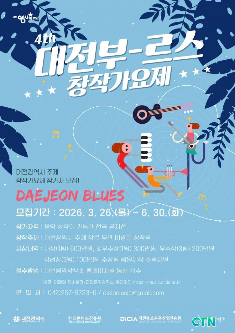 [´ëÀü/CTN]Á¤¹ÎÁØ ±âÀÚ¤Ó´ëÀü±¤¿ª½Ã¿Í ´ëÀüÁ¤º¸¹®È»ê¾÷ÁøÈï¿ø(ÀÌÇÏ ÁøÈï¿ø)ÀÌ ¿î¿µÇÏ´Â ´ëÀüÀ½¾ÇâÀÛ¼Ò´Â ¿À´Â 8¿ù °³ÃֵǴ ¡®´ëÀü 0½ÃÃàÁ¦¡¯¿Í ¿¬°èÇÏ¿© ´ëÀüÀ» ´ëÇ¥ÇÒ À½¾Ç IP¸¦ È®º¸ÇÏ°í ¿ì¼öÇÑ ´ëÁßÀ½¾ÇÀÎÀ» ¹ß±¼Çϱâ À§ÇÑ ¡®Á¦4ȸ ´ëÀüºÎ¸£½º âÀÛ°¡¿äÁ¦¡¯ Âü°¡ÀÚ¸¦ ¸ðÁýÇÑ´Ù°í ¹àÇû´Ù.