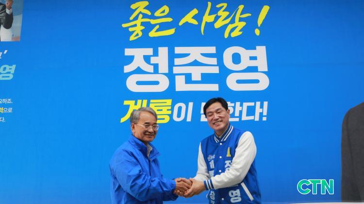 [°è·æ/CTN]Á¤¹ÎÁØ ±âÀÚ¤Ó´õºÒ¾î¹ÎÁÖ´ç °è·æ½ÃÀå °æ¼±ÀÌ °á¼± ±¹¸é¿¡ µ¹ÀÔÇÑ °¡¿îµ¥, ¹ÚÃ῱ Àü ¿¹ºñÈ帰¡ Á¤ÁØ¿µ Èĺ¸¿¡ ´ëÇÑ °ø½Ä ÁöÁö¸¦ ¼±¾ðÇÏ¸ç °øµ¿ ¼±°Å´ëÃ¥º»ºÎÀåÁ÷À» ¸Ã±â·Î Çß´Ù.