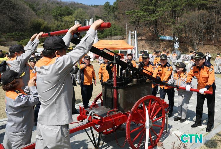 ÀÌ¿Í ÇÔ²² °ú°Å »êºÒ ÁøÈÂ÷ÀÇ º¯Ãµ»ç¸¦ ¼Ò°³ÇÏ´Â »çÁø Àü½Ã¸¦ ÁøÇàÇß°í ¿¾ ¼Ò¹æ ÀåºñÀÎ ¡®¿Ï¿ëÆßÇÁ¡¯¸¦ Ȱ¿ëÇÑ ¹æ¼ö ½Ã¿¬°ú ¹° ä¿ì±â üÇè ÇÁ·Î±×·¥µµ º´ÇàÇß´Ù.